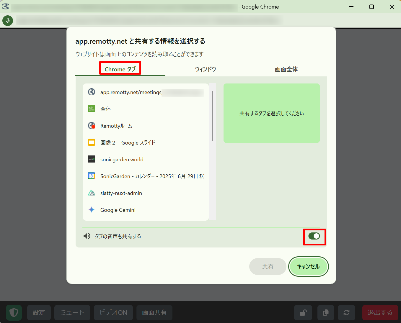 Remottyのテレビ会議・音声会議室で、画面共有時にPCからのシステム音を共有できるようになりました。